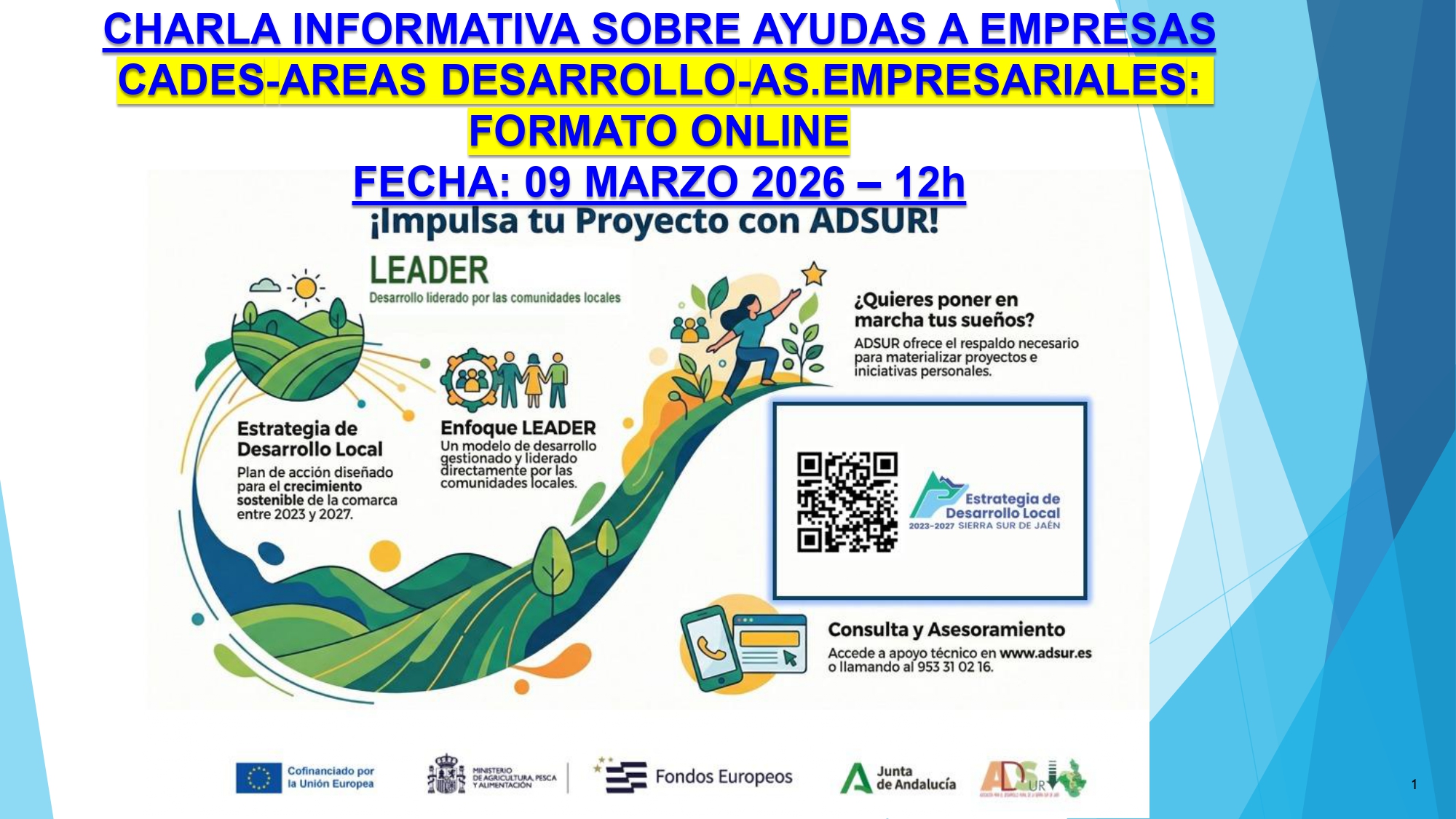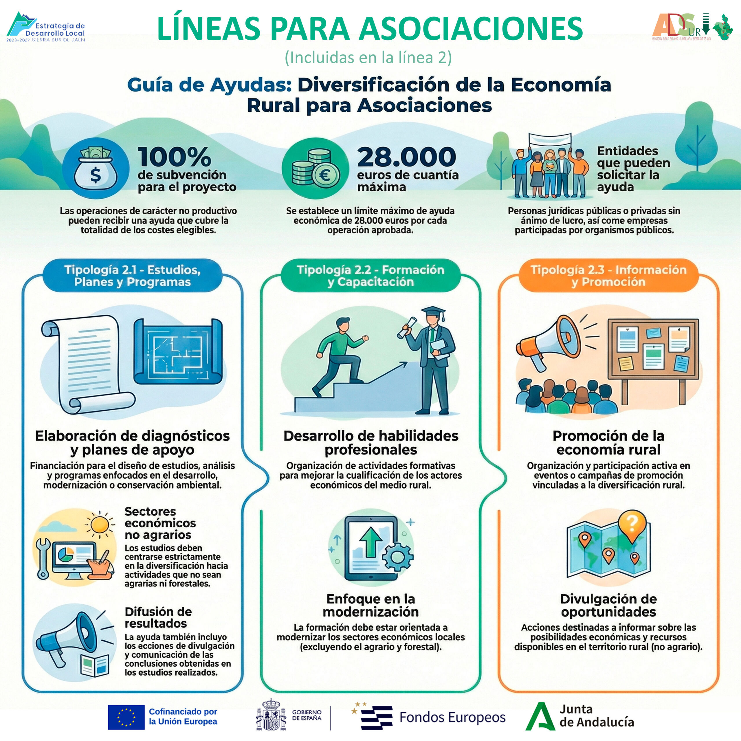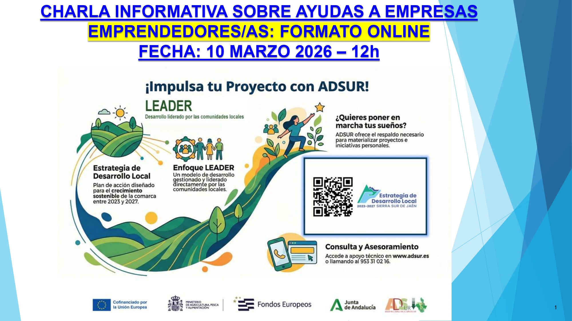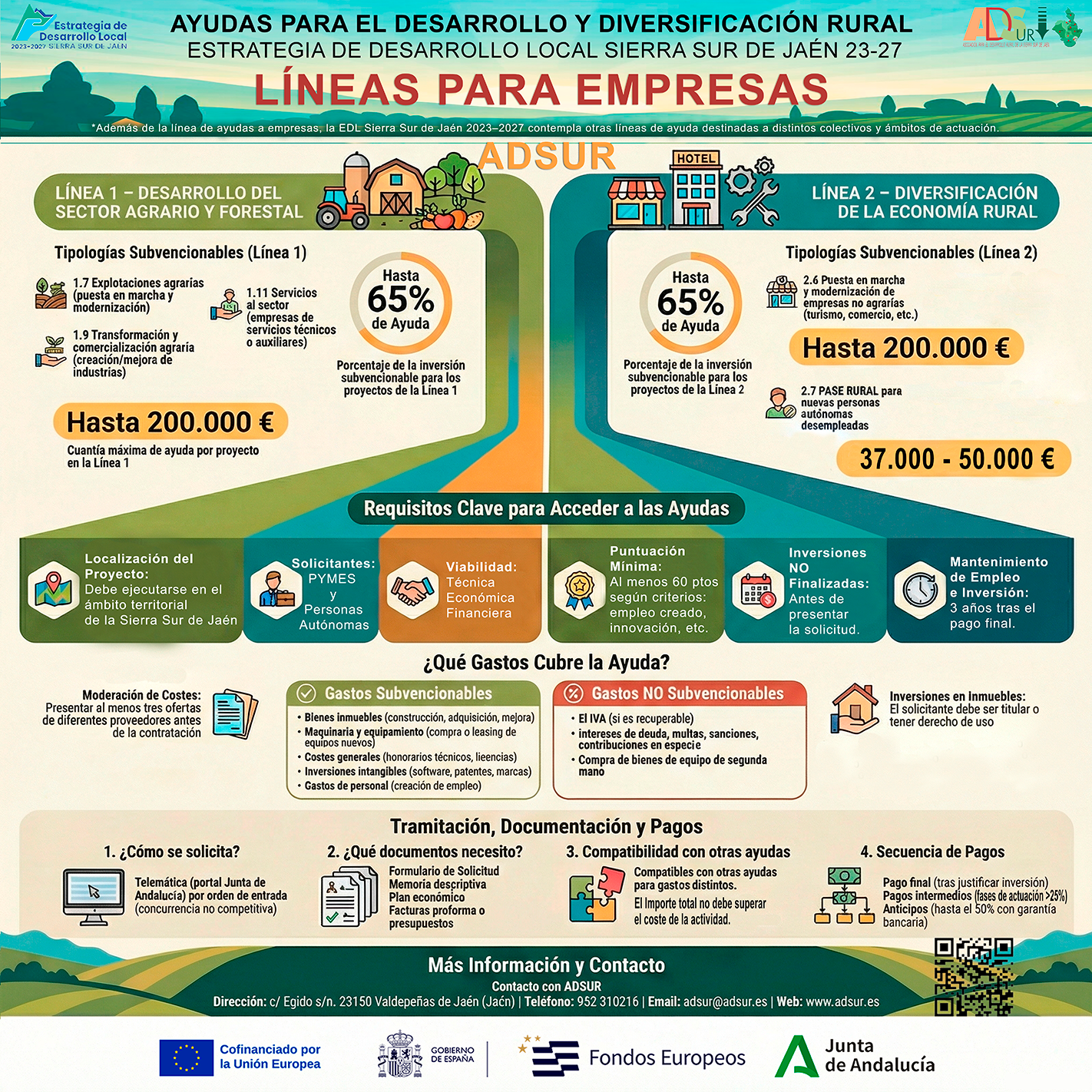 AYUDAS PARA EMPRESAS, PERSONAS AUTÓNOMAS Y ASOCIACIONES EN EL MARCO DE LA ESTRATEGIA DE DESARROLLO LOCAL 2023-2027 DE LA SIERRA SUR DE JAÉN
