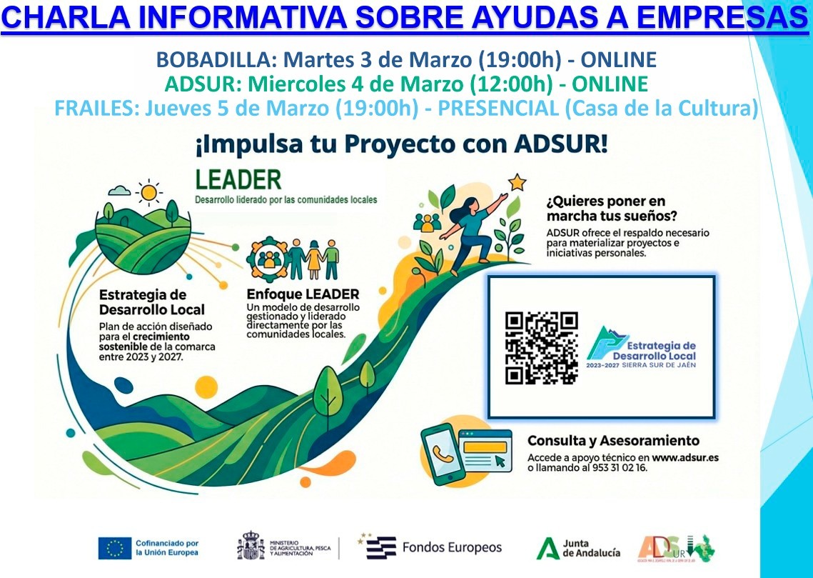 ADSUR IMPULSA SESIONES INFORMATIVAS SOBRE AYUDAS A EMPRESAS Y PERSONAS EMPRENDEDORAS EN EL MARCO DE LA ESTRATEGIA DE DESARROLLO LOCAL 2023-2027