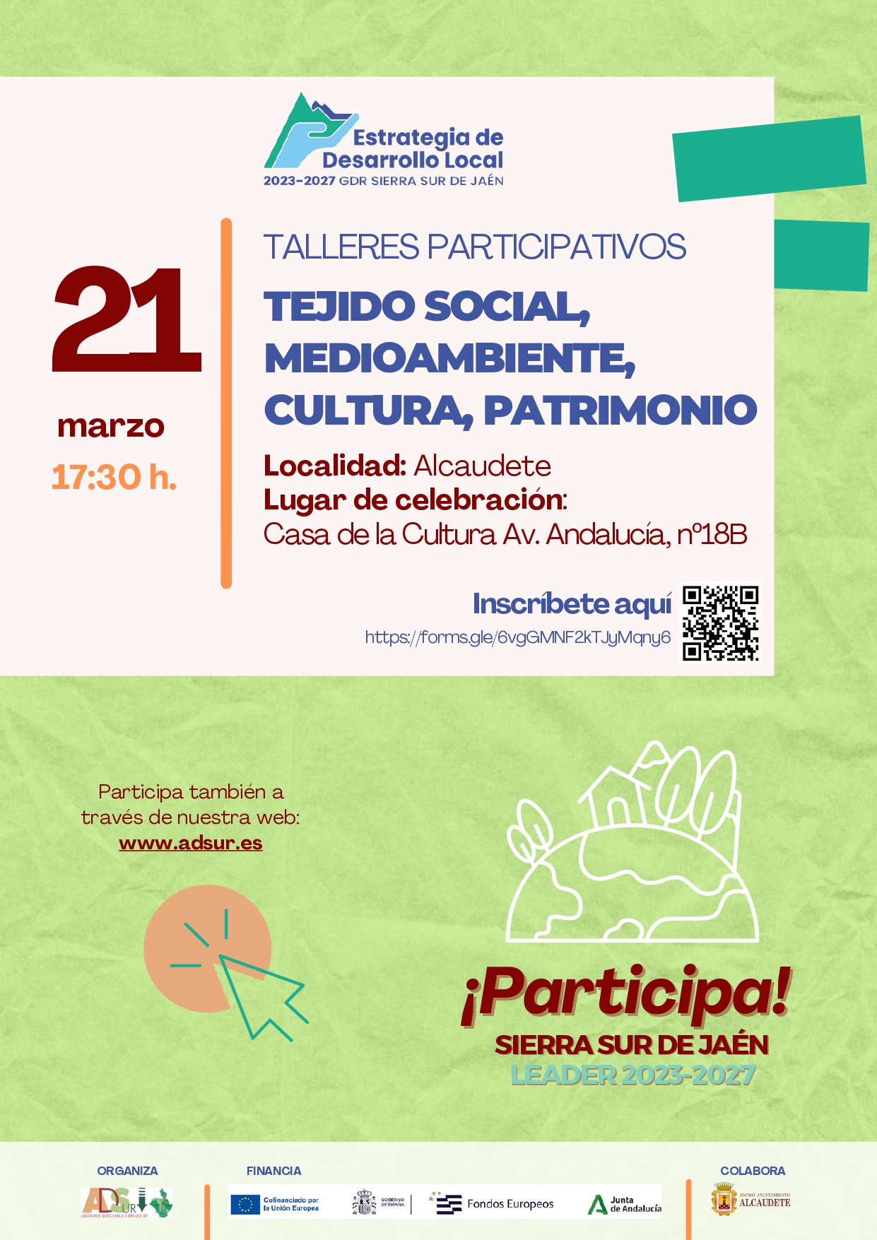 ¿Quieres participar en la decisión de a qué se destinarán los fondos europeos del nuevo marco 2023-2027 de la Estrategia de Desarrollo Local de la Sierra Sur de Jaén?